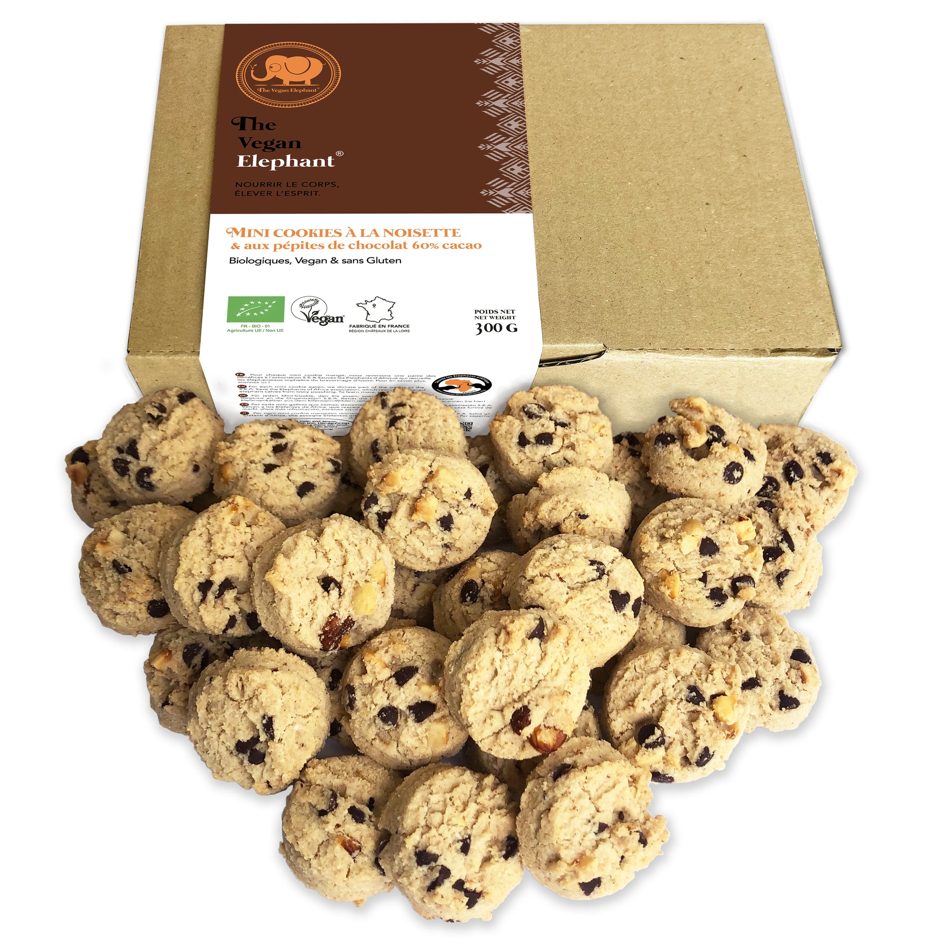 MINI COOKIES BIO & VEGAN Naturellement Sans Gluten aux Noisettes et aux Pépites de Chocolat - Boite de 300G