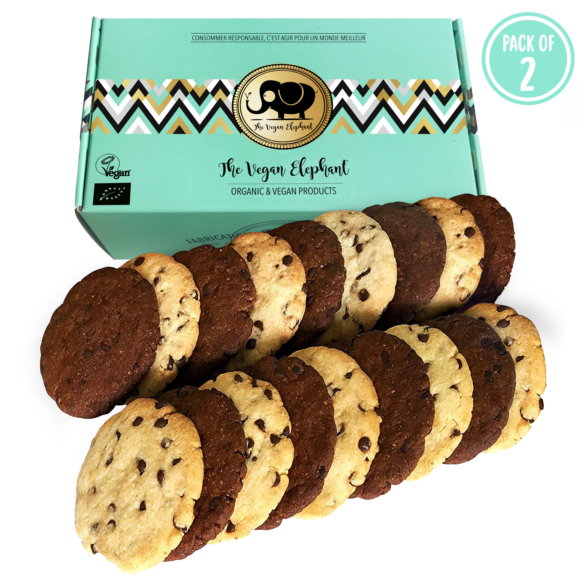 COOKIES BIO & VEGAN Vanille Pépites de Chocolat et Tout Chocolat - 2 Boites de 17 Cookies