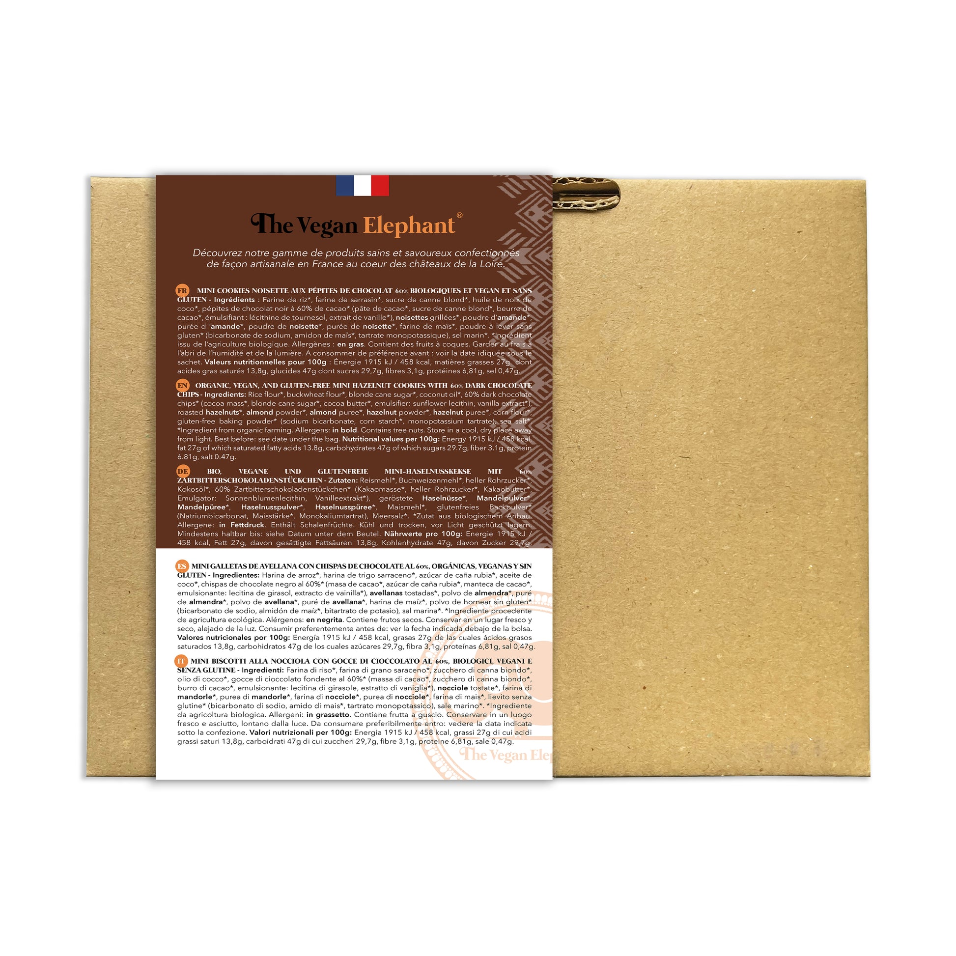 The Vegan Elephant Cookies sont issus d'une fabrication artisanale dans notre atelier situé dans le centre de la France auprès des Châteaux de la Loire à partir d'ingrédients 100% Bio et Vegan de grande qualité, choisis avec le plus grand soin, sans huile et palme ni OGM.