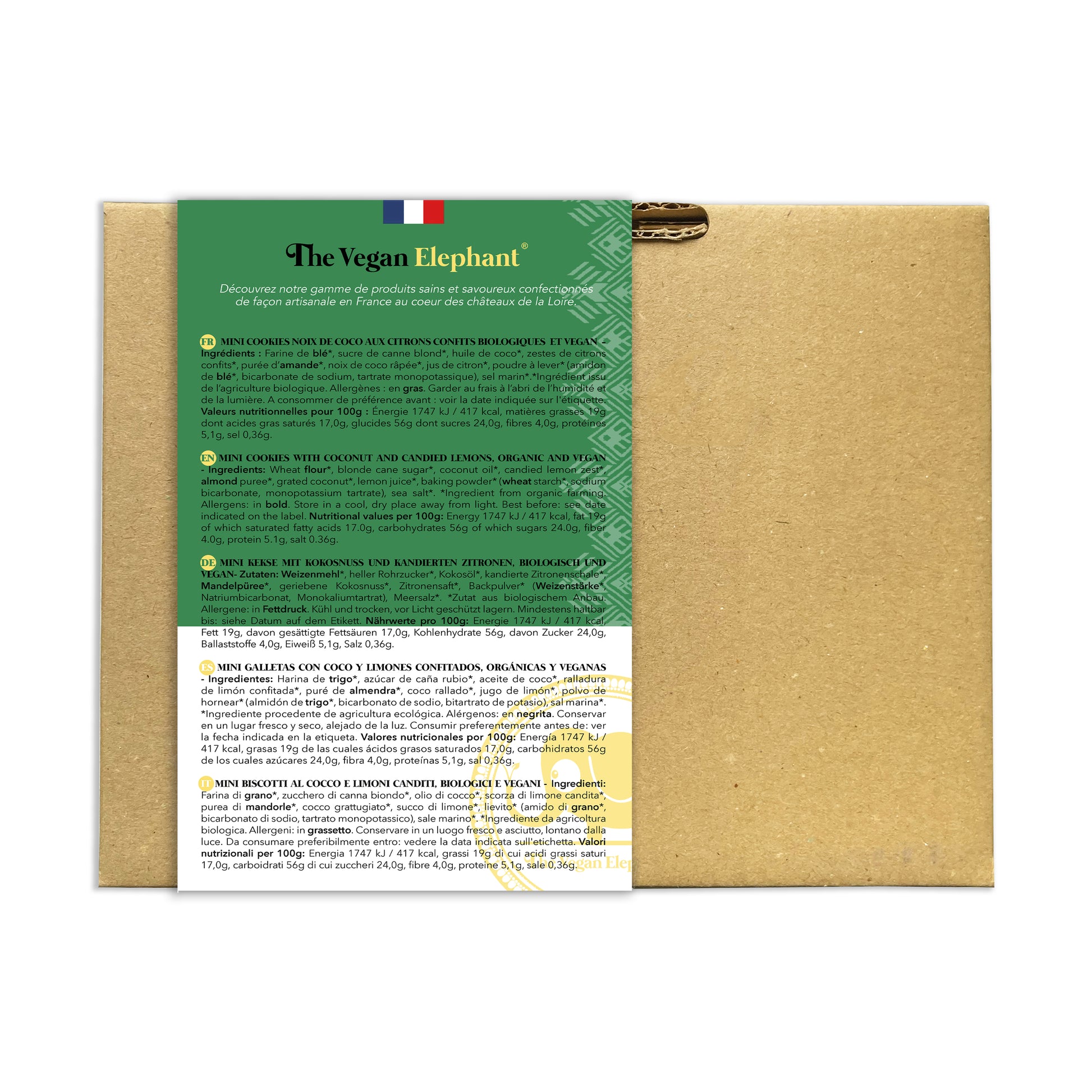 The Vegan Elephant Cookies sont issus d'une fabrication artisanale dans notre atelier situé dans le centre de la France auprès des Châteaux de la Loire à partir d'ingrédients 100% Bio et Vegan de grande qualité, choisis avec le plus grand soin, sans huile et palme ni OGM.